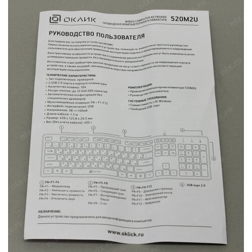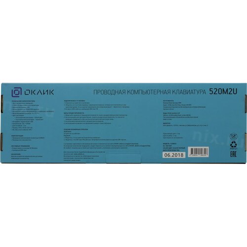 Клавиатура Oklick 520M2U черный/черный USB slim Multimedia [1061587]