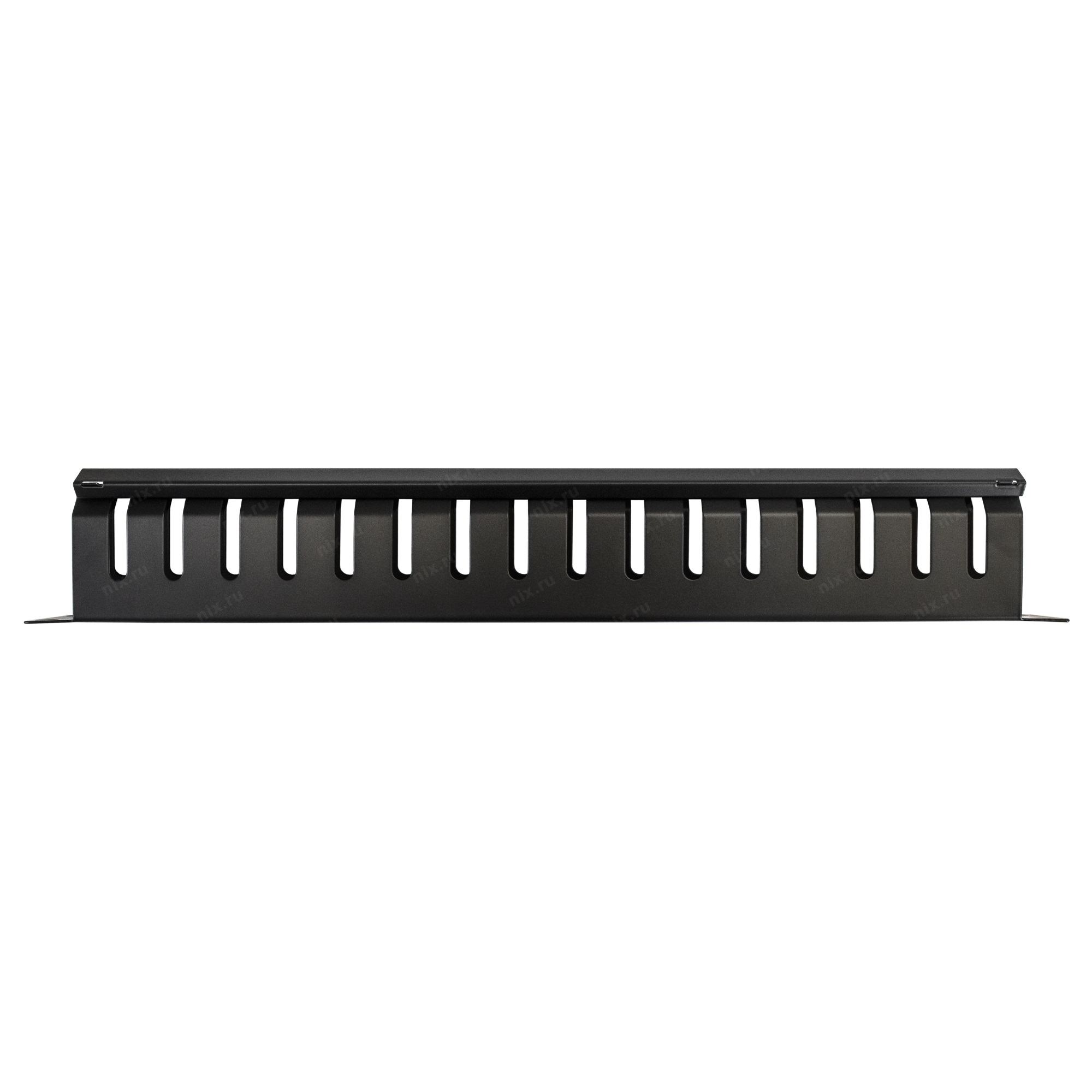Аксессуары к монтажным шкафам Exegate EX292872RUS Exegate EX292872RUS Кабельный органайзер ExeGate CM19-1U-16M-CV (горизонтальный 19" 1U, металлический, 2 окна в основании профиля, гребенка на 16 вырезов, глубина 45mm, с металличе