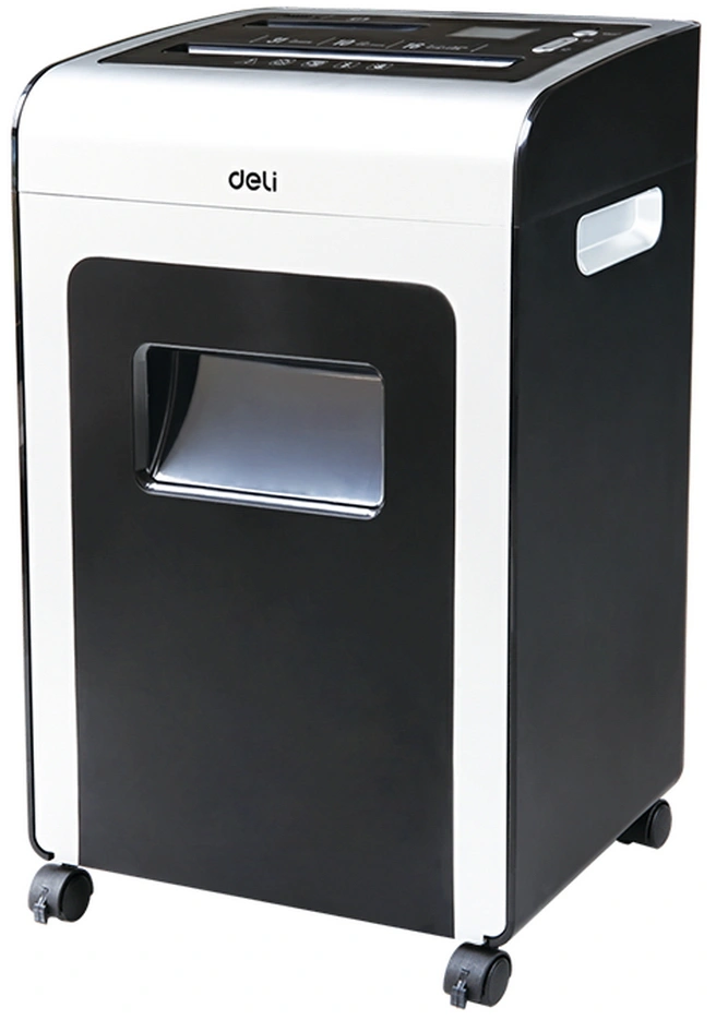 Шредер Deli E9917-EU черный/белый с автоподачей (секр.P-4) фрагменты 16лист. 31лтр. скрепки скобы пл.карты CD