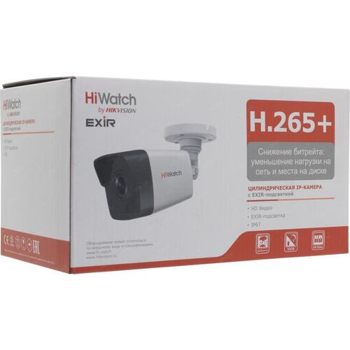 Цилиндрическая фиксированная цифровая мегапиксельная уличная камера видеонаблюдения HiWatch DS-I200(D) с поддержкой кодека H.265+, с продвинутой LED подсветкой EXIR, поддержкой PoE, DWDR, 3D DNR, BLC, ROI. Защищена от воды и пыли по стандарту IP-67