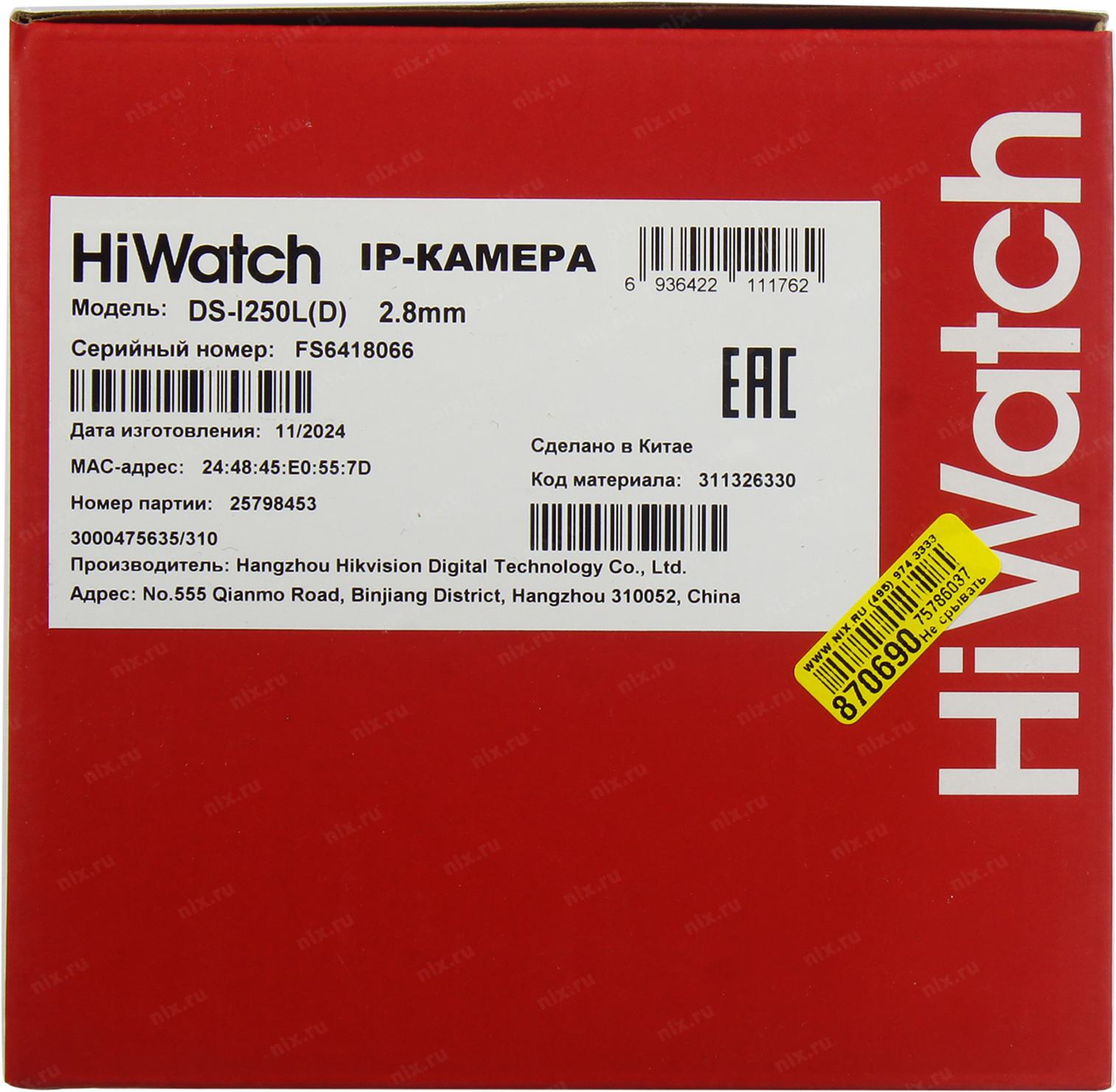 Размеры упаковки (измерено в никсе)