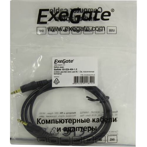 Кабели Exegate EX284942RUS Кабель аудио ExeGate EX-CCA-404-1.2 (3.5mm Jack M/3.5mm Jack M, 1,2м, позолоченные контакты)