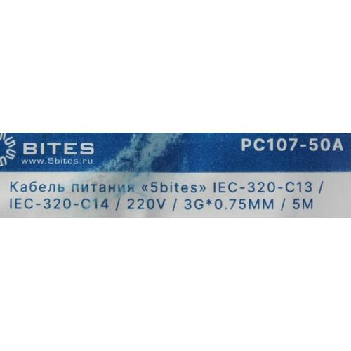 Кабель 5bites Кабель питания PC107-50A IEC-320-C13 / IEC-320-C14 / 220V / 3G*0.75MM / 5M