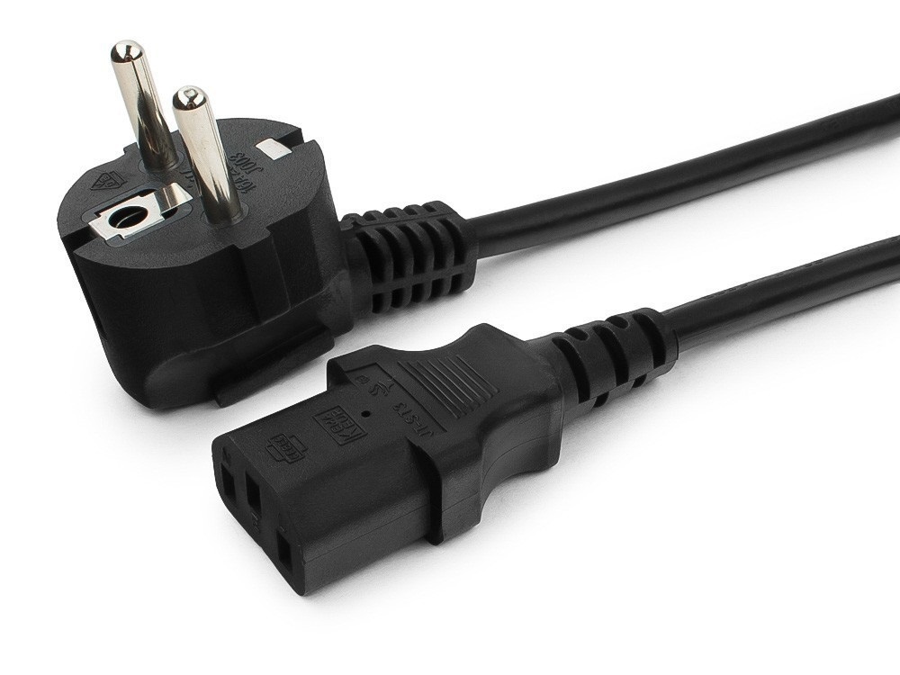 Кабель для подключения к электросети системного блока или периферийных устройств со встроенным блоком питания. Евровилка угловая.