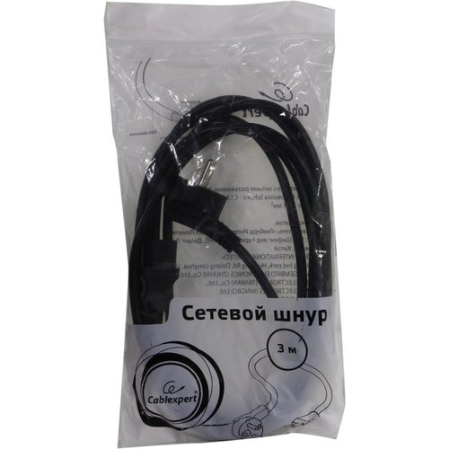 Кабель питания Cablexpert PC-186-1-3M, 3м, Schuko- C13, Сечение провода 3x1кв.мм, черный, с заземлением, пакет (75) (792594)