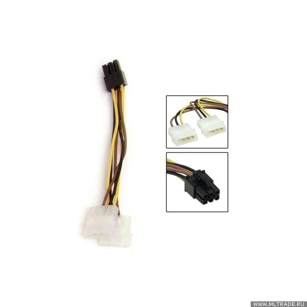Переходник для дополнительного питания видеокарты через 6-пиновый разъем от 2 коннекторов Molex (питание устаревших HDD IDE) блока питания компьютера