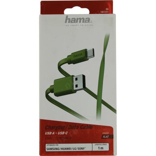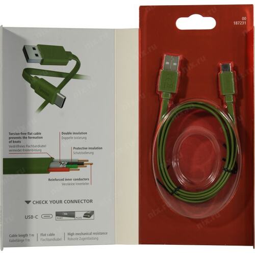 Кабель Hama 00187231 USB (m)-USB Type-C (m) 1м зеленый плоский