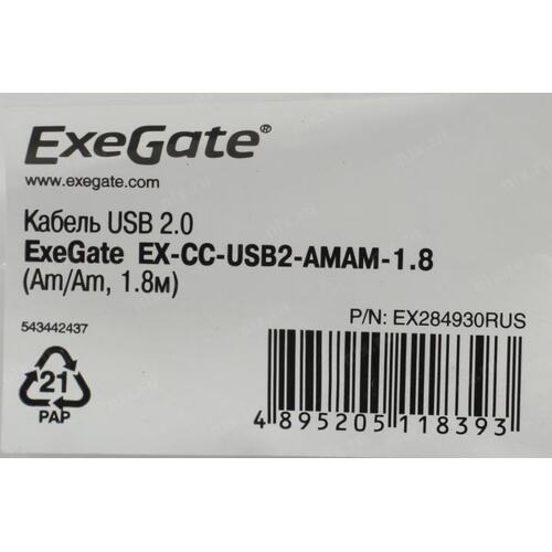 Кабели Exegate EX284930RUS Кабель USB 2.0 ExeGate EX-CC-USB2-AMAM-1.8 (Am/Am, 1,8м)