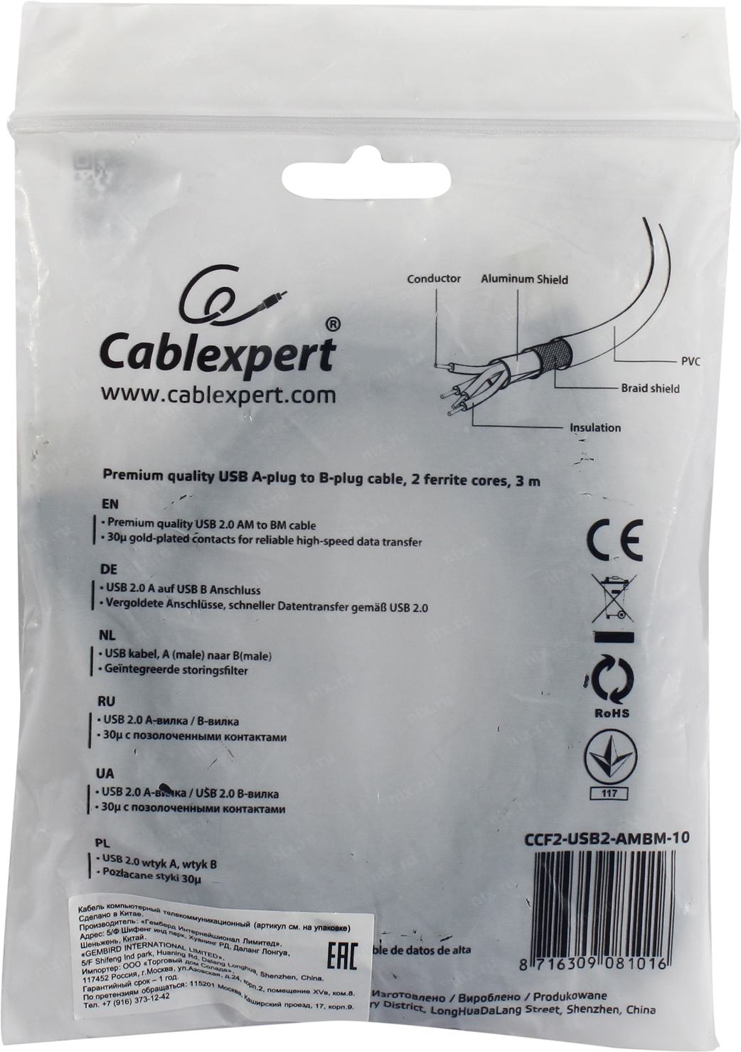Cablexpert <CCF-USB2-AMBM-10> Кабель USB 2.0 A-->B 3м 1 фильтр
