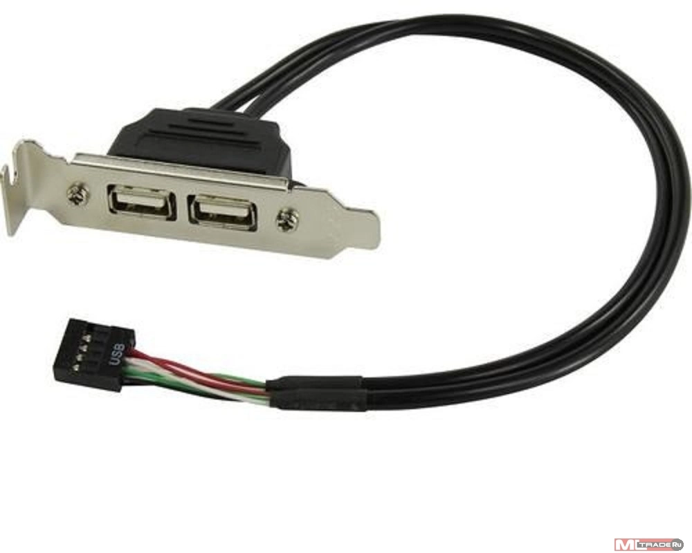 Вывод с материнской платы (разъем IDC 10pin F) 2-х разъемов USB 2.0 на заднюю панель ПК. Низкопрофильная монтажная планка (bracket) устанавливается на заднюю стенку корпуса компьютера.