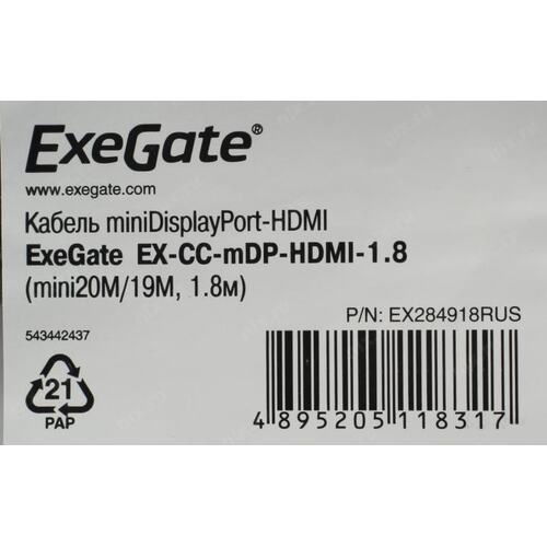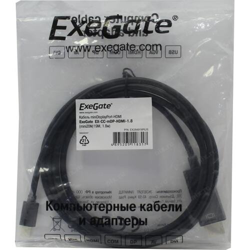 Кабели Exegate EX284918RUS Кабель miniDisplayPort-HDMI ExeGate EX-CC-mDP-HDMI-1.8 (mini20M/19M, 1,8м)