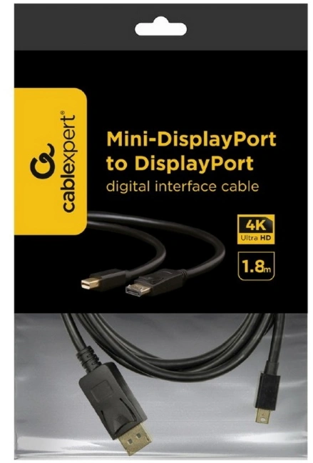 Коммутационный шнур Cablexpert CCP-mDP2-6 Кабель miniDP<->DP , 20M/20M, v.1.2, 4K, 1.8м, черный, позол.разъемы, пакет