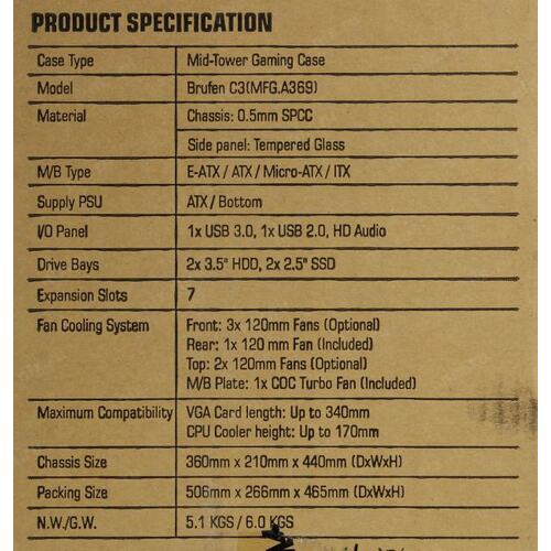 Корпуса GameMax Корпус Brufen C3 WB без БП, MidiT, ATX, Бело-гол, Зак. стекл., USB 3.0, 1*120; 1*140мм вент. [BrufenC3WB]