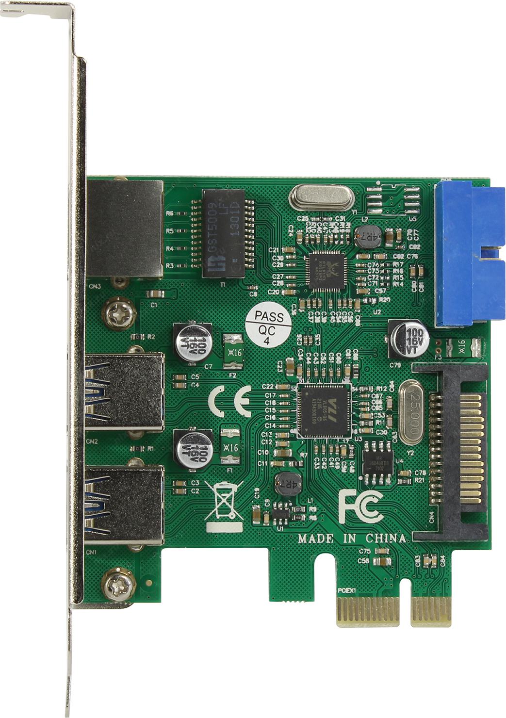 Контроллер Exegate EX290278RUS Контроллер ExeGate EXE-362 PCI-E 2.0, 2*USB3.0 ext + 1*USB3.0 int + LAN UTP 1000Mbps, разъем доп.питания (OEM)