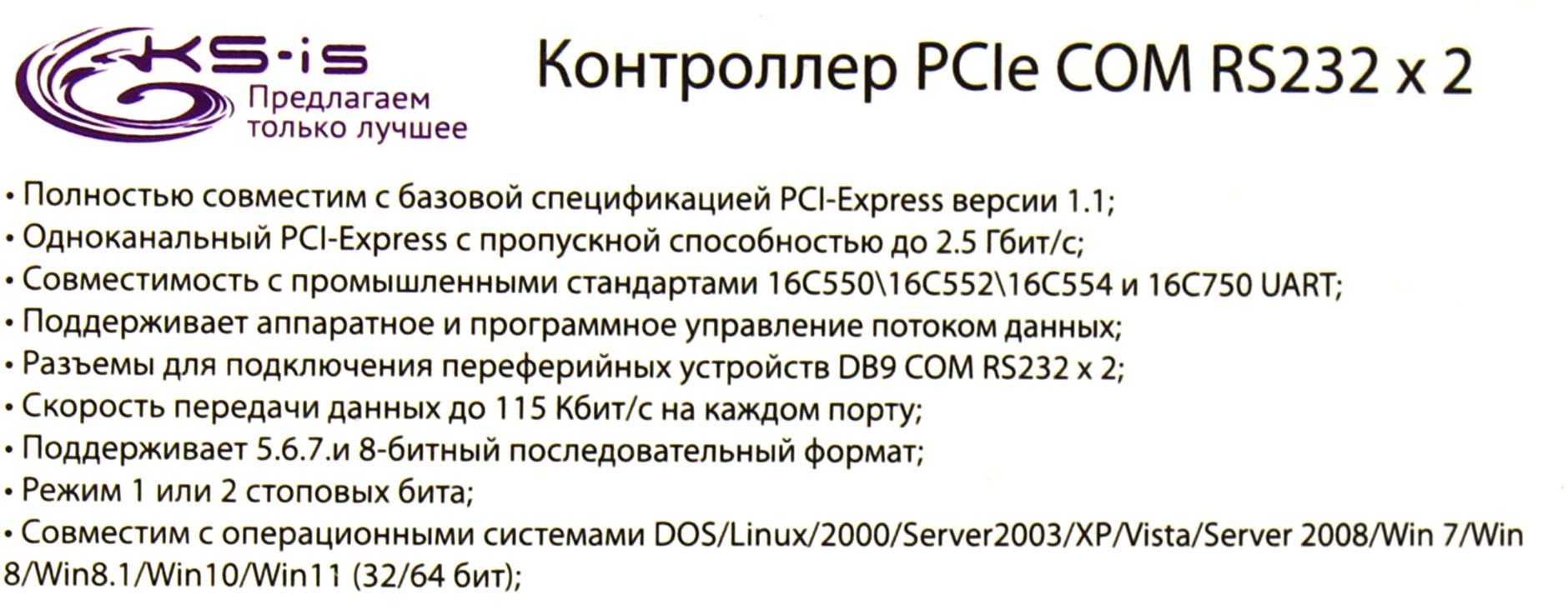 Контроллер KS-is KS-575 Контроллер PCIe COM RS232 x 2