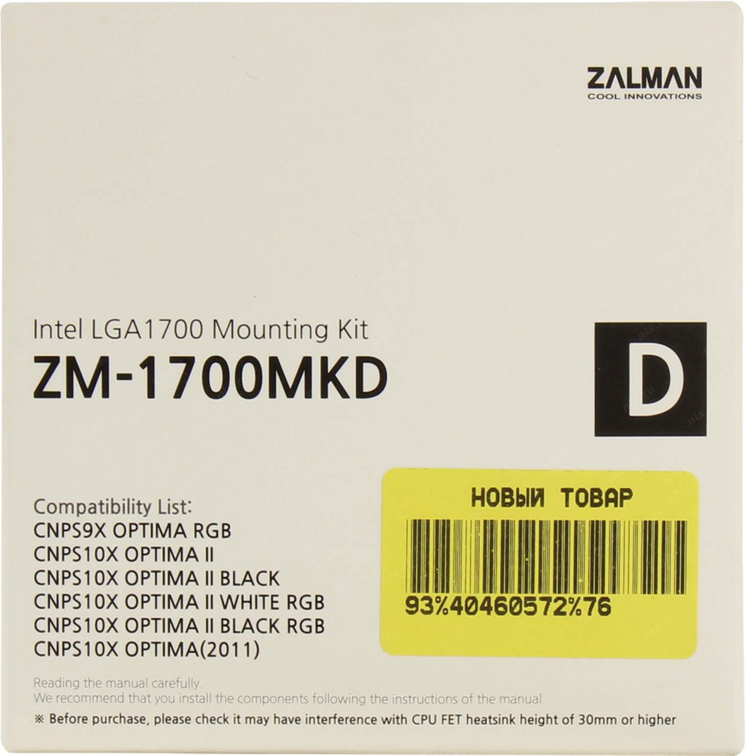 Вентилятор Zalman ZM-1700MKD Backplate x1 + Intel Clip x2 + Screw x4 (CNPS9X OPTIMA RGB, CNPS10X OPTIMA II, CNPS10X OPTIMA II Black, CNPS10X OPTIMA II White RGB, CNPS10X OPTIMA II Black RGB, CNPS10X OPTIMA 2011)