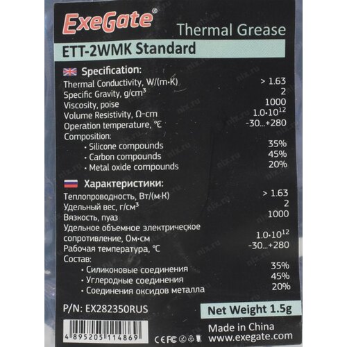 Термопаста Exegate EX282350RUS Термопаста ETT-2WMK Standard, шприц, 1.5г