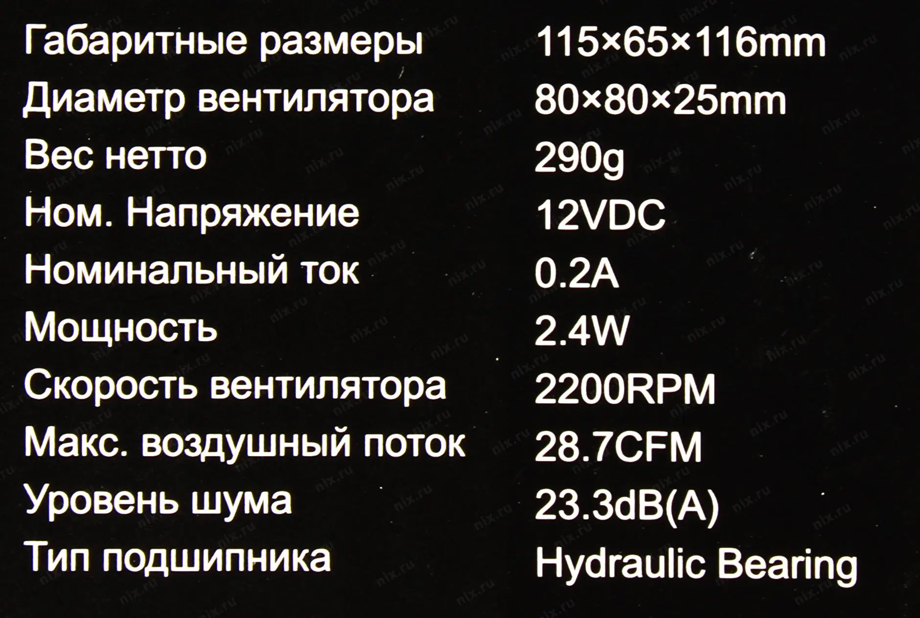 92 x 92 x 25 мм. Возможна установка второго вентилятора