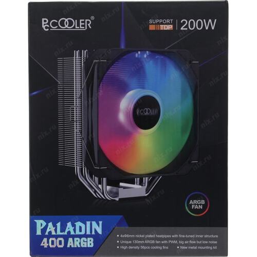 Кулер для процессора PCCooler Paladin 400 ARGB S115X/1200/1700/AM4 (20 шт/кор, TDP 200W, 130mm PWM ARGB FAN, 4 тепловые трубки 6мм, 800-1600RPM, 18-28,6dBa)
