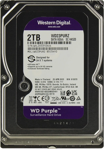 Жесткий диск Western Digital 2TB 6GB/S SATA 64MB PURPLE WD23PURZ bulk