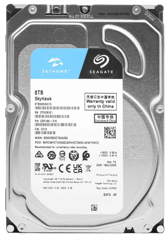 Жесткий диск 8TB Seagate SkyHawk (ST8000VX010) (SATA 6 Гбит/с, 7200 rpm, 256 mb buffer)