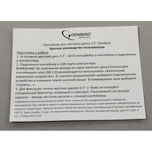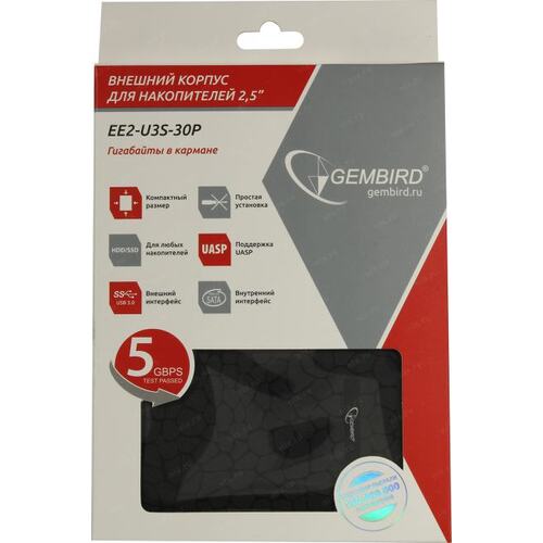 Контейнер для HDD Gembird EE2-U3S-30P Внешний корпус 2.5" черный, USB 3.0, SATA, до 2 Тб, пластик