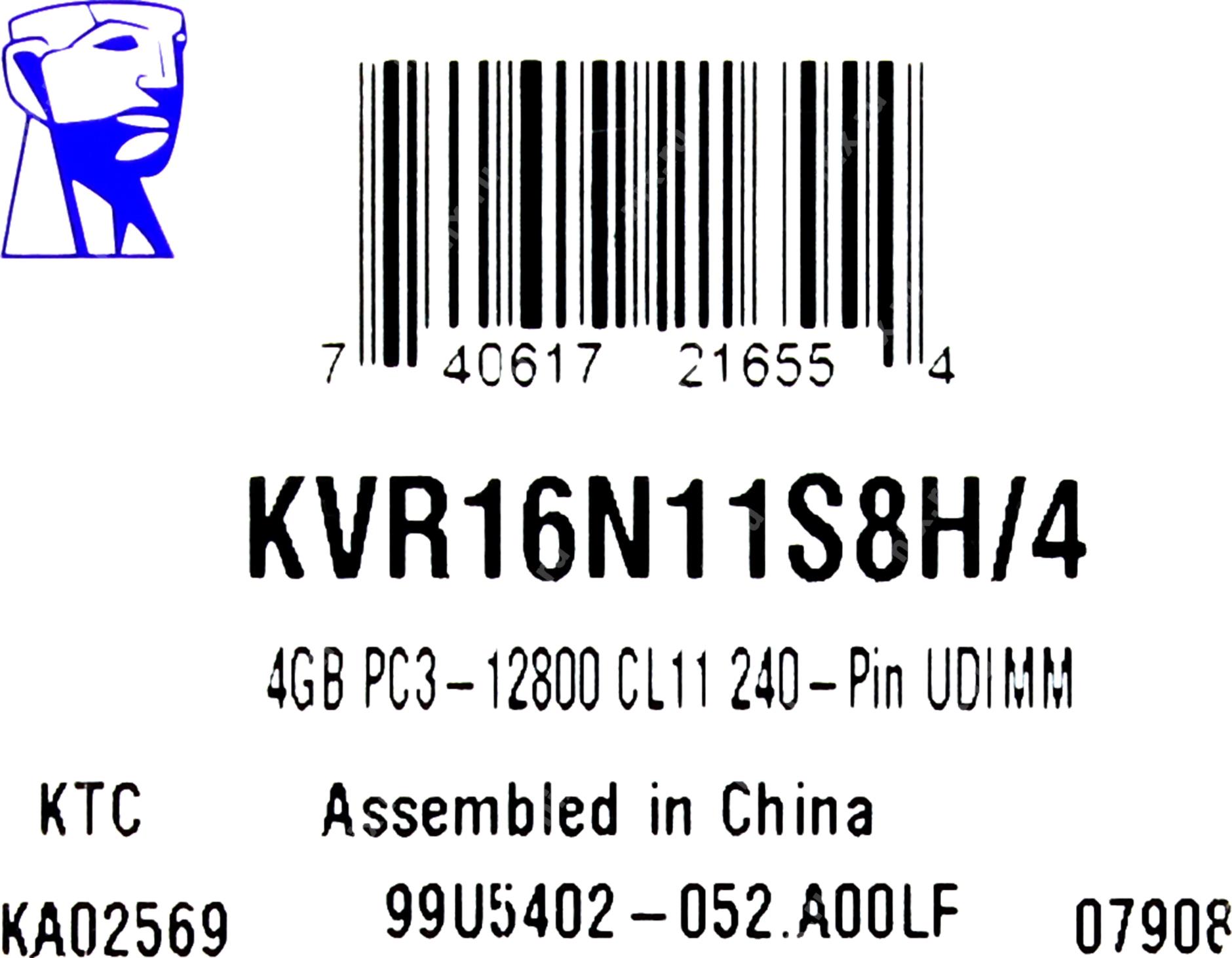 Kingston DDR-III 4GB (PC3-12800) 1600MHz CL11 Single Rank