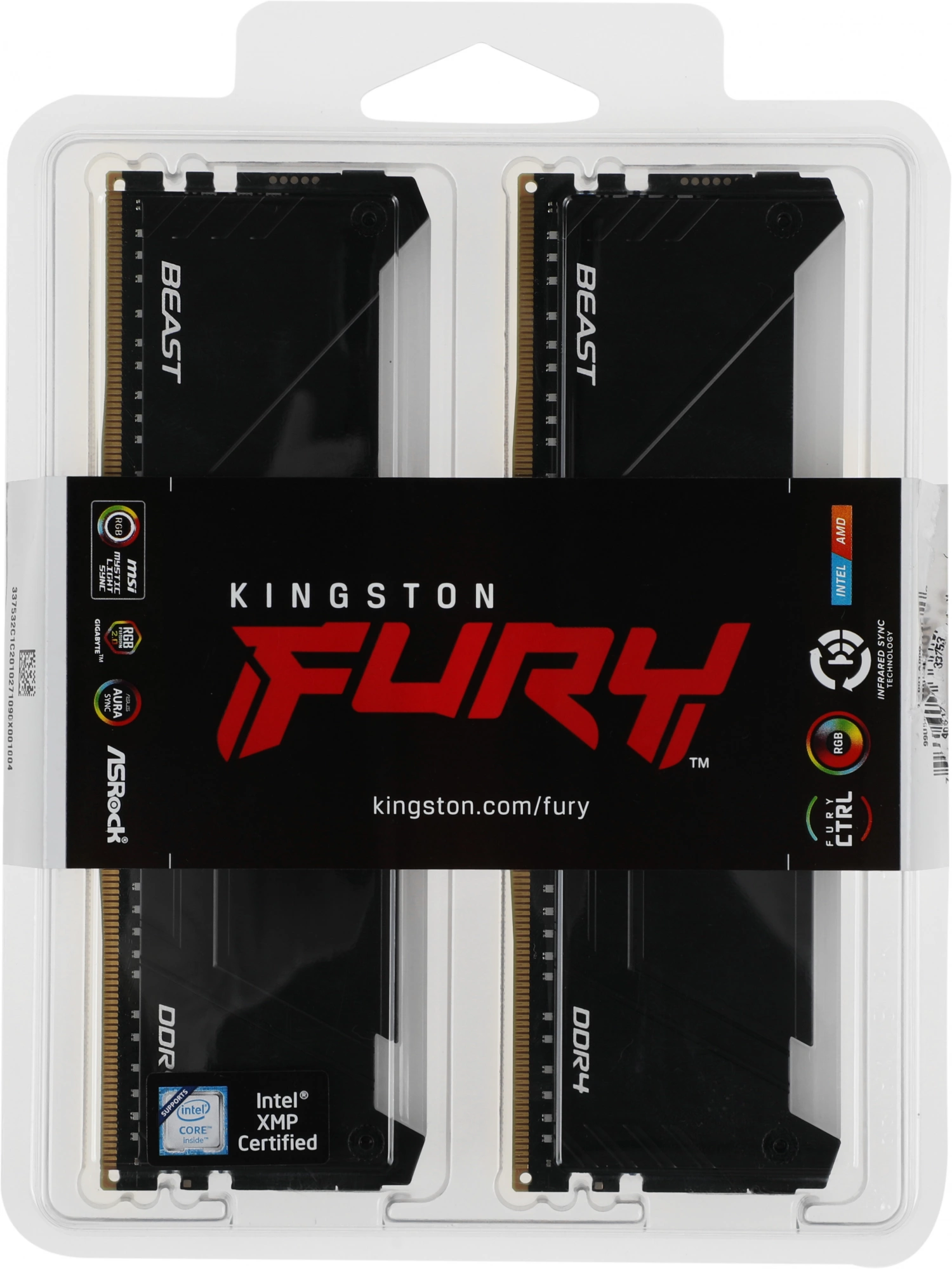 Модуль памяти Kingston 16GB DDR4 3200MHz DIMM FURY Beast Black RGB XMP kit 2x8Gb, CL16, 1.35V 288-pin Non-ECC (KF432C16BB2AK2/16)