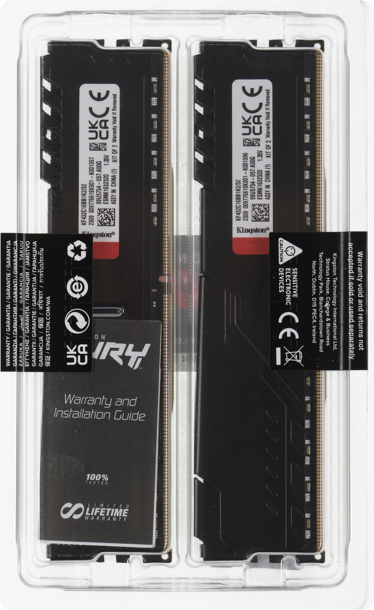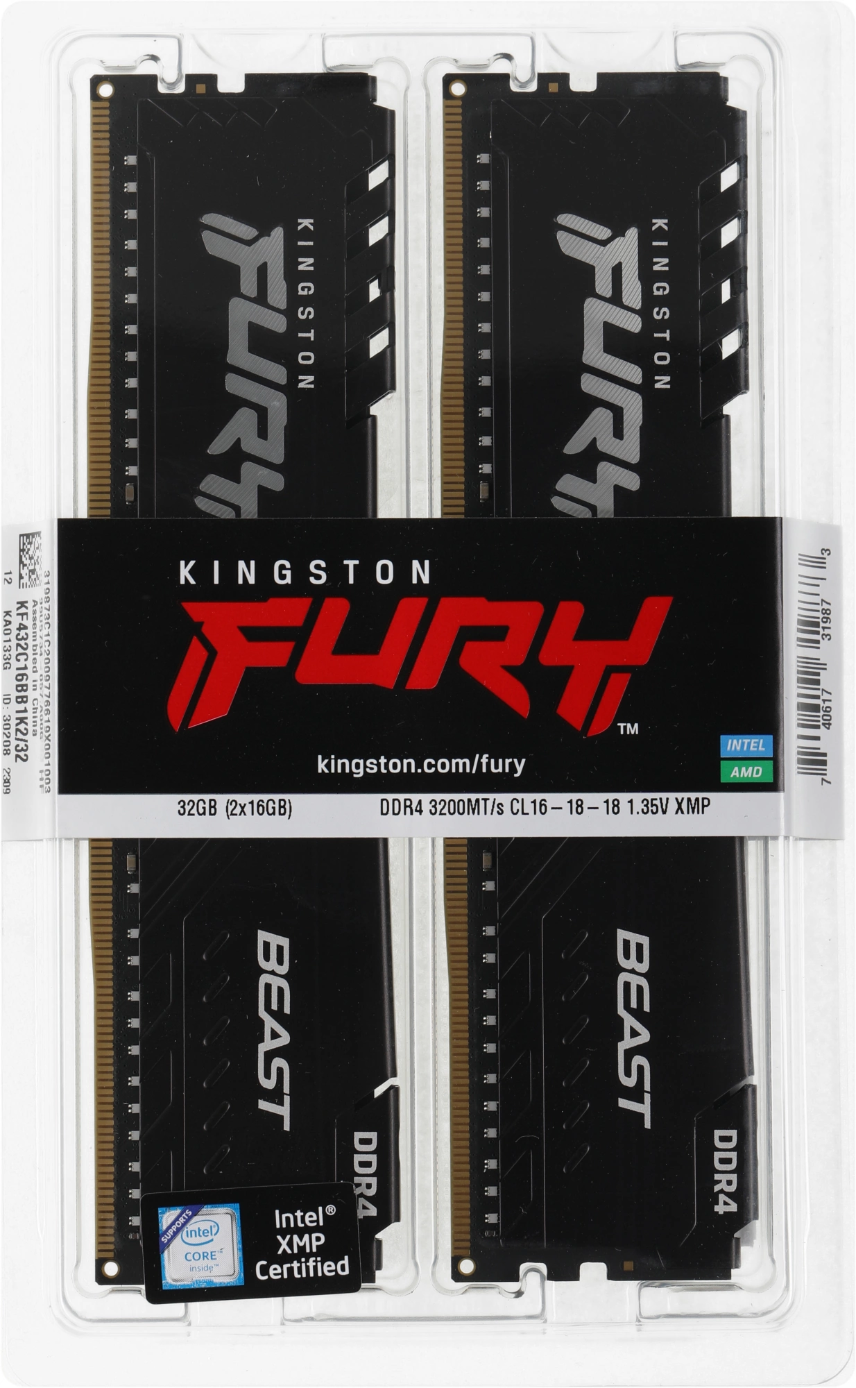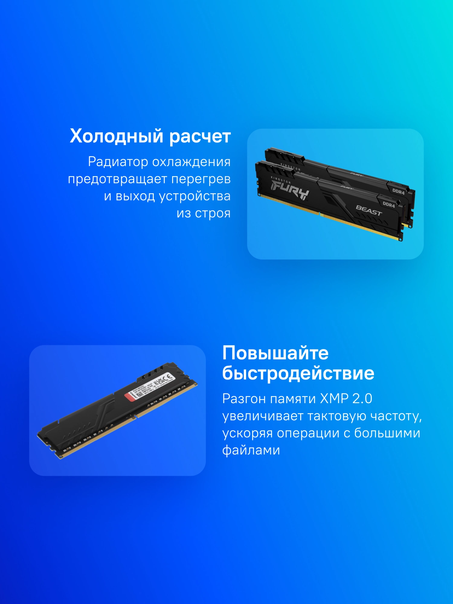 Модуль памяти Kingston FURY Beast Black Gaming Memory KF432C16BB1K2/32 32GB DDR4 3200 DIMM Non-ECC, CL16, 1.35V, 1Gx8 Кит 2х16, RTL, (319873)