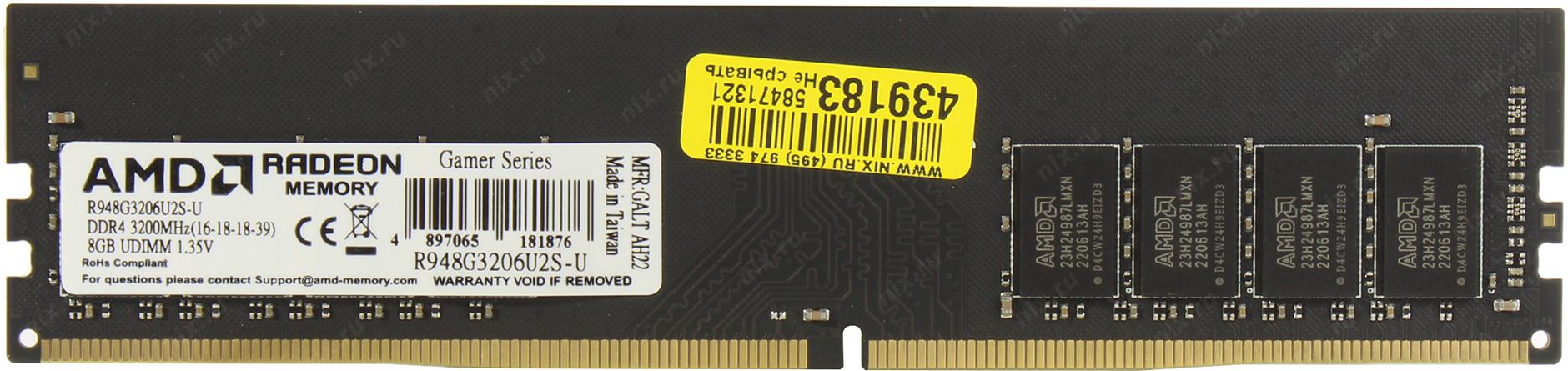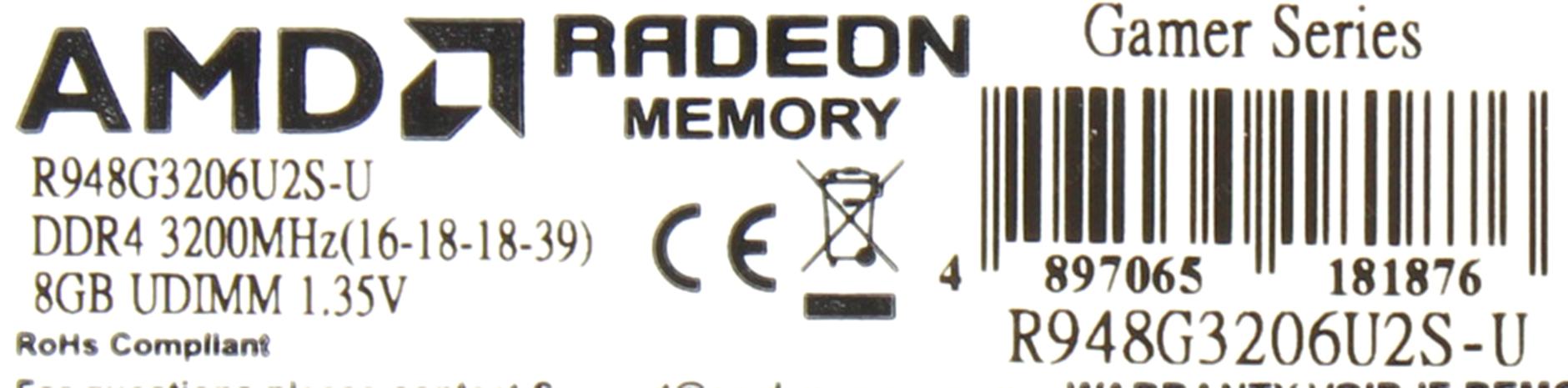 Модуль памяти AMD DDR4 DIMM 8GB Gamer Series R948G3206U2S-U 3200, Ret