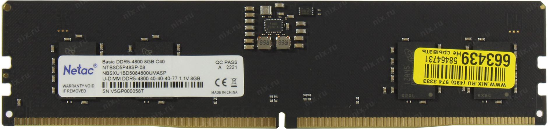 Оперативная память Netac Basic DIMM 8GB DDR5-4800 (PC5-38400) C40 40-40-40-77 1.1V Memory module <NTBSD5P48SP-08>