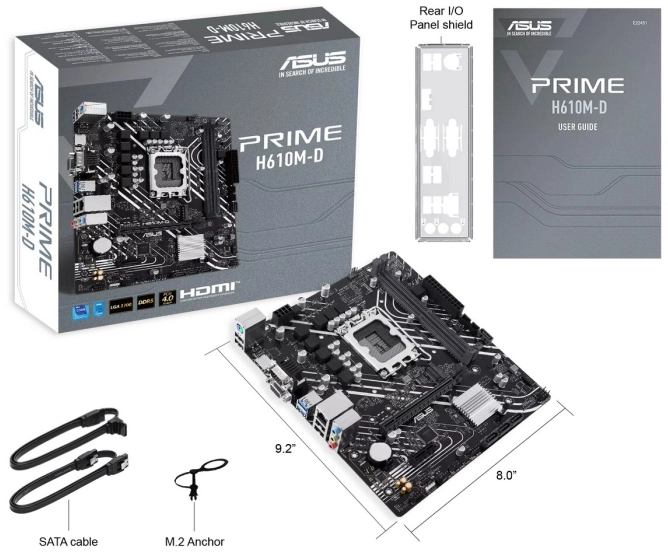 Материнская плата ASUS PRIME H610M-D (Socket 1700, mATX, 2xDDR5(96GB), VGA/HDMI 2.1, 1xPCIe 4.0x16/1xPCIe 3.0, 1xLAN, 4xSATA 6Gb/s, 1xM.2, 2xUSB 3.2, 4xUSB 2.0, 1xPS/2) [PRIMEH610M-D]