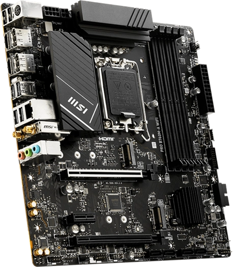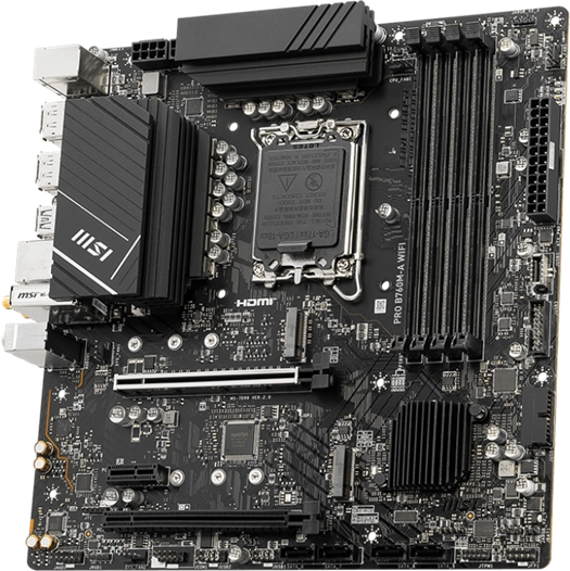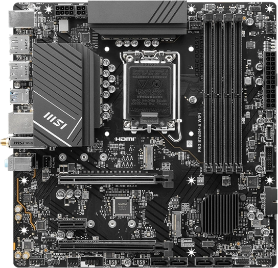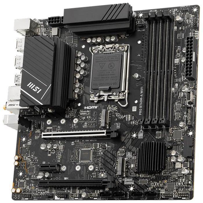 Материнская плата MicroStar MSI PRO B760M-A WIFI (Soc-1700, Intel B760, 4xDDR5, mATX AC`97 8ch(7.1) 2.5Gg+HDMI+DP) [PROB760M-AWIFI]