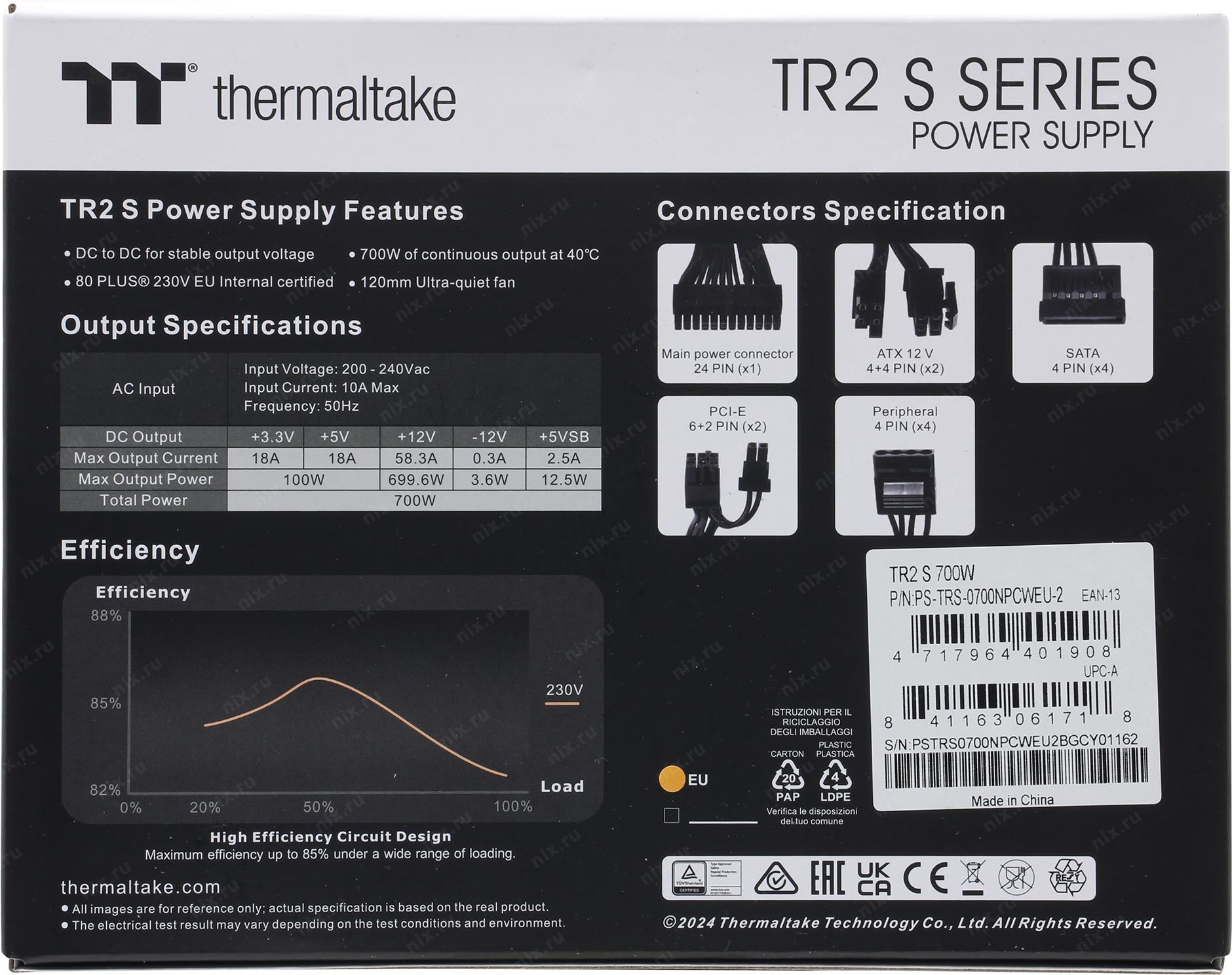 Блок питания Thermaltake TR2 S 700W, ATX, 120mm, 5xSATA, 2xPCI-E, APFC, 80+, BOX <PS-TRS-0700NPCWEU-2>