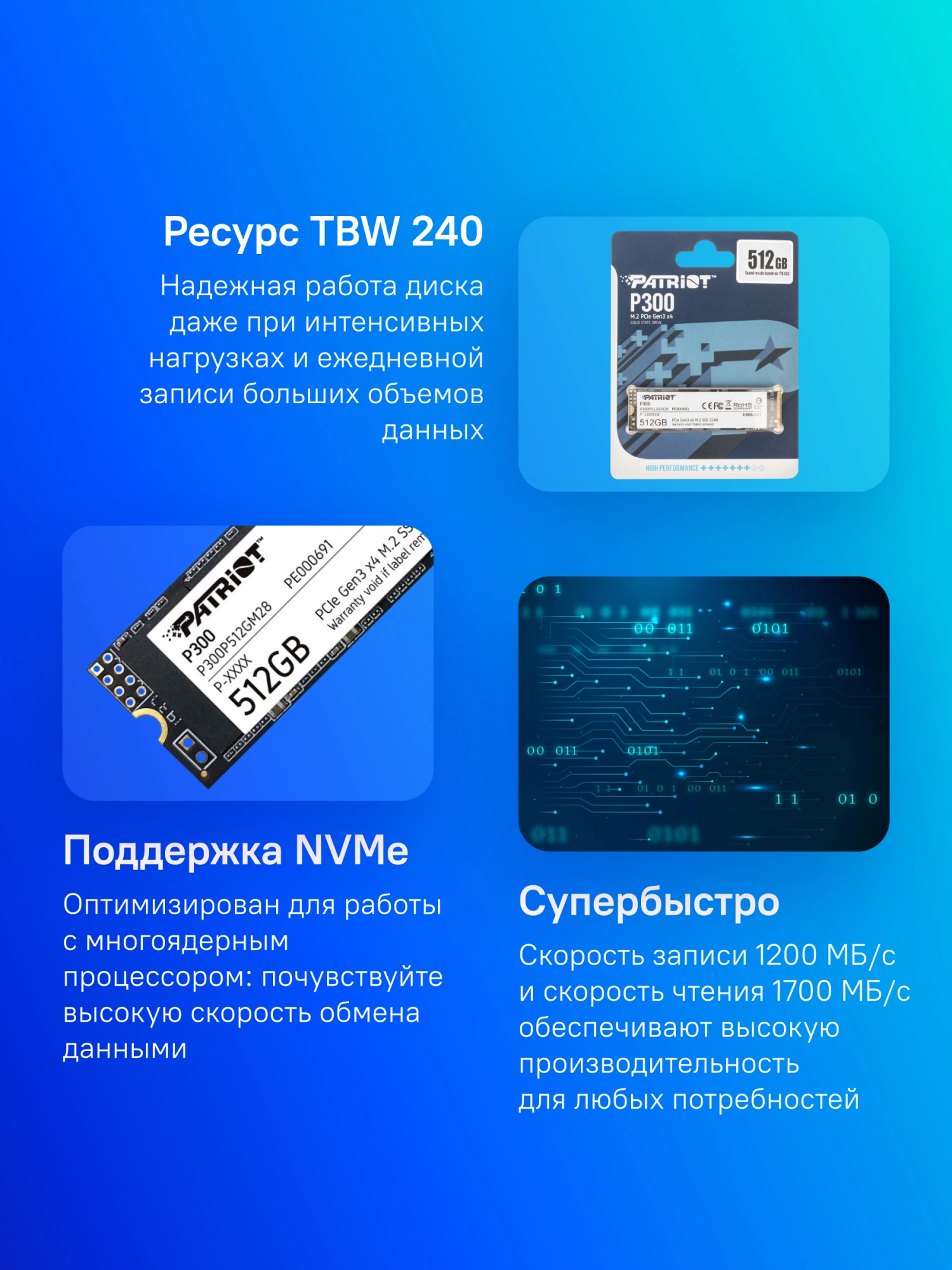 Накопитель SSD M.2 2280 512GB P300P512GM28 PATRIOT