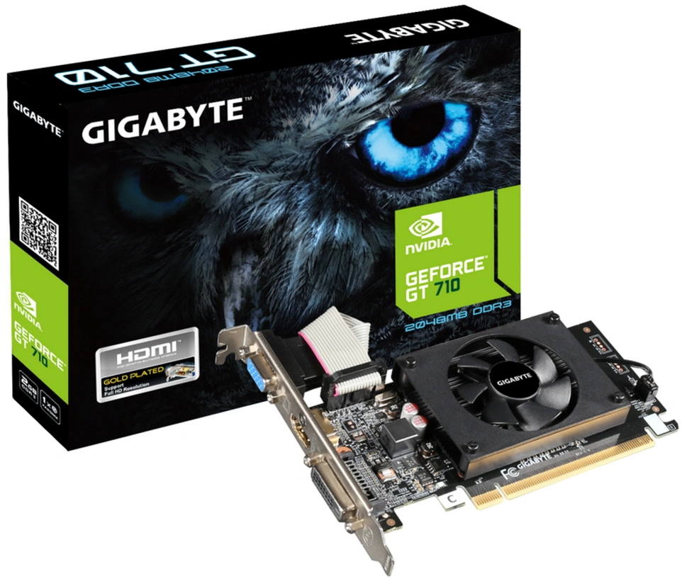 Видеокарта Gigabyte GV-N710D3-2GL (V2.0) RTL (GT710, 2Gb, 64bit, DDR3, D-Sub, DVI, HDMI, PCI-E)