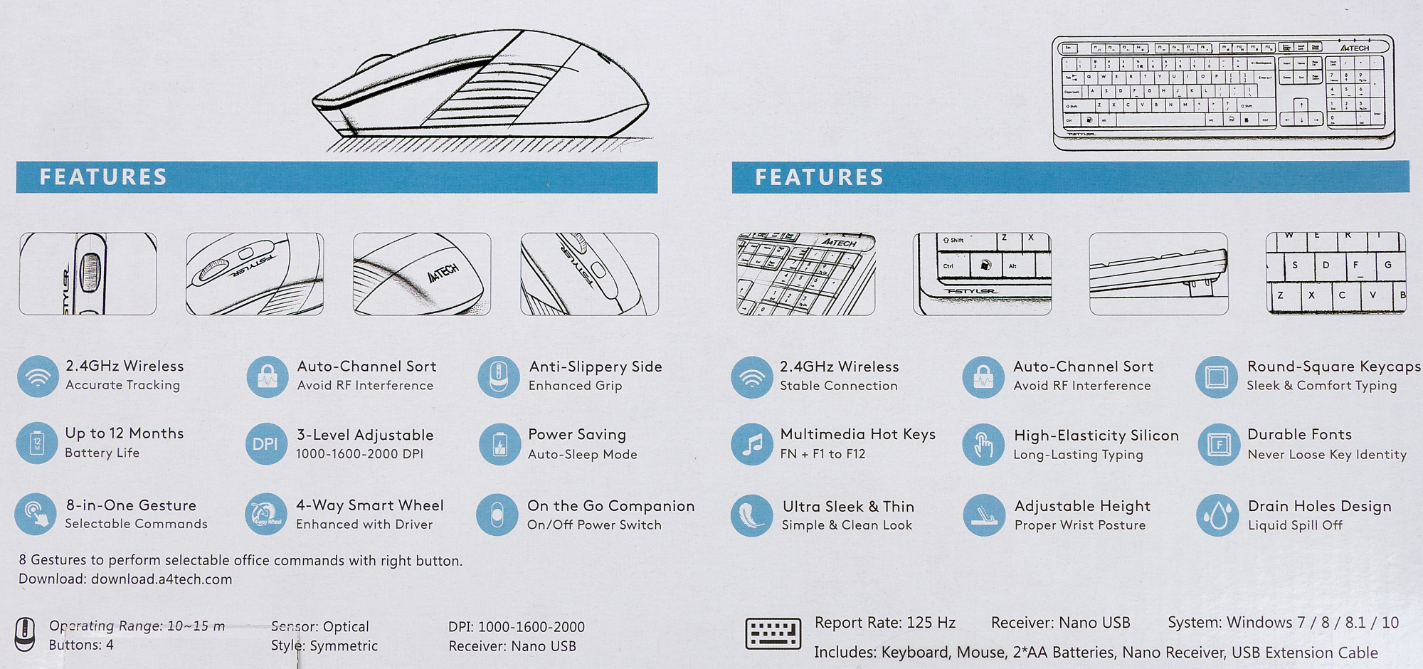 2 батарейки типа AA, USB-приемник, USB-удлинитель