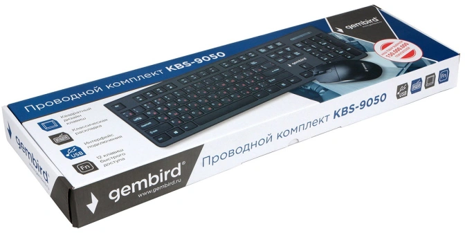 Клавиатура + мышь Gembird KBS-9050 (Проводной комплект, черный, 1,5 м, 104кл, 1000 DPI)