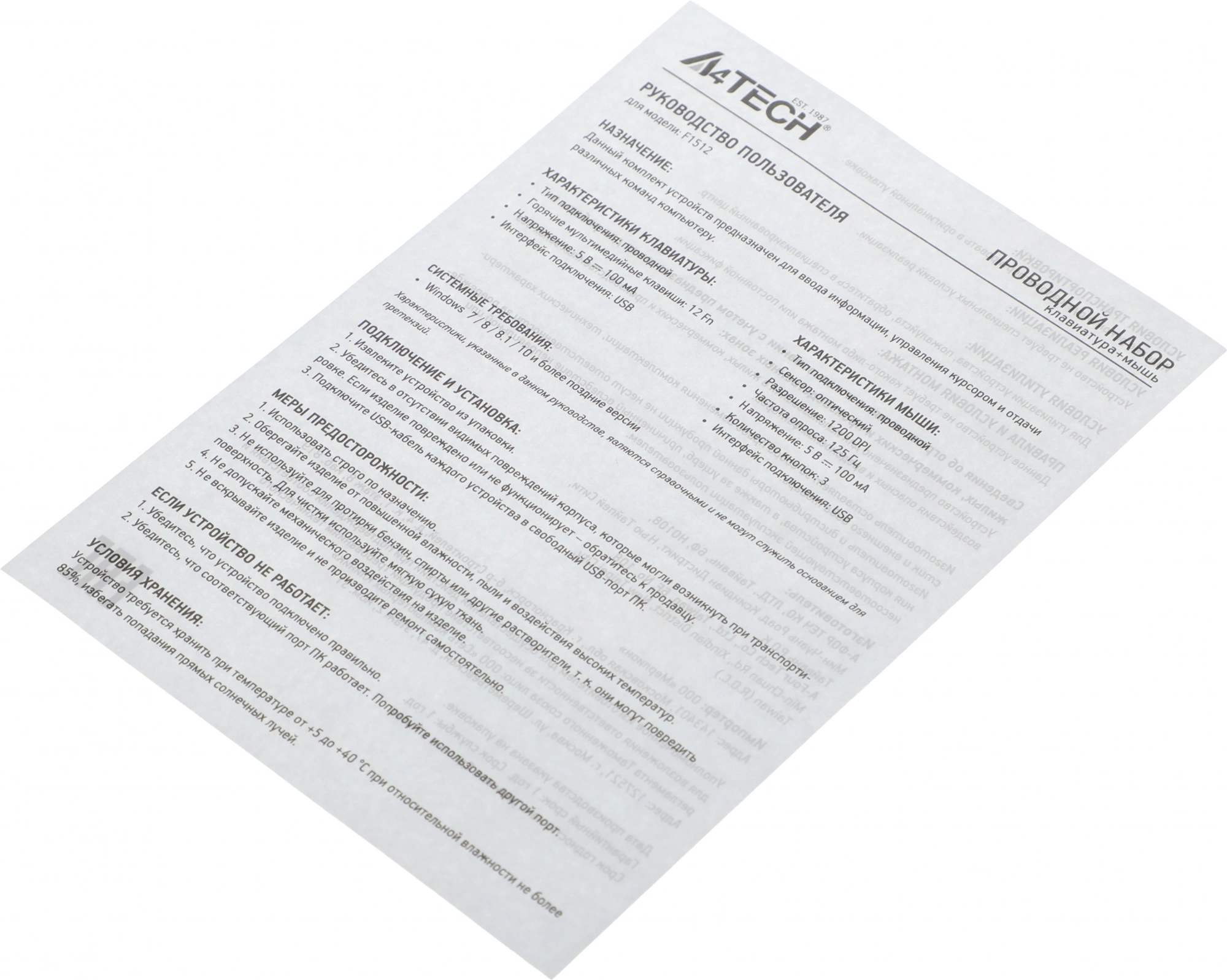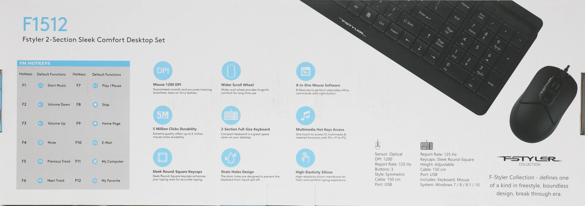 Клавиатура + мышь A4Tech Fstyler F1512 клав:черный мышь:черный USB (F1512 BLACK) [F1512BLACK]