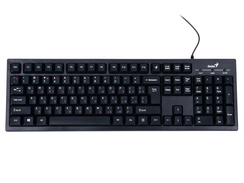 Клавиатура Genius Smart KB-101 - это персонализируемая "умная" клавиатура. С помощью приложения SmartGenius вы можете присвоить различные функции клавишам с F1 по F12 и получить Skype-клавиатуру,Word-клавиатуру, клавиатуру эмодзи и ещё множество вариантов. Пользователи традиционно отмечают высокое качество сборки, доступную цену, удобство и лёгкость в использовании. Smart KB-101 Black, классическая, мультимедийная, SmartGenius, влагоустойчивая, клавишь 105, провод 1,5 м, USB