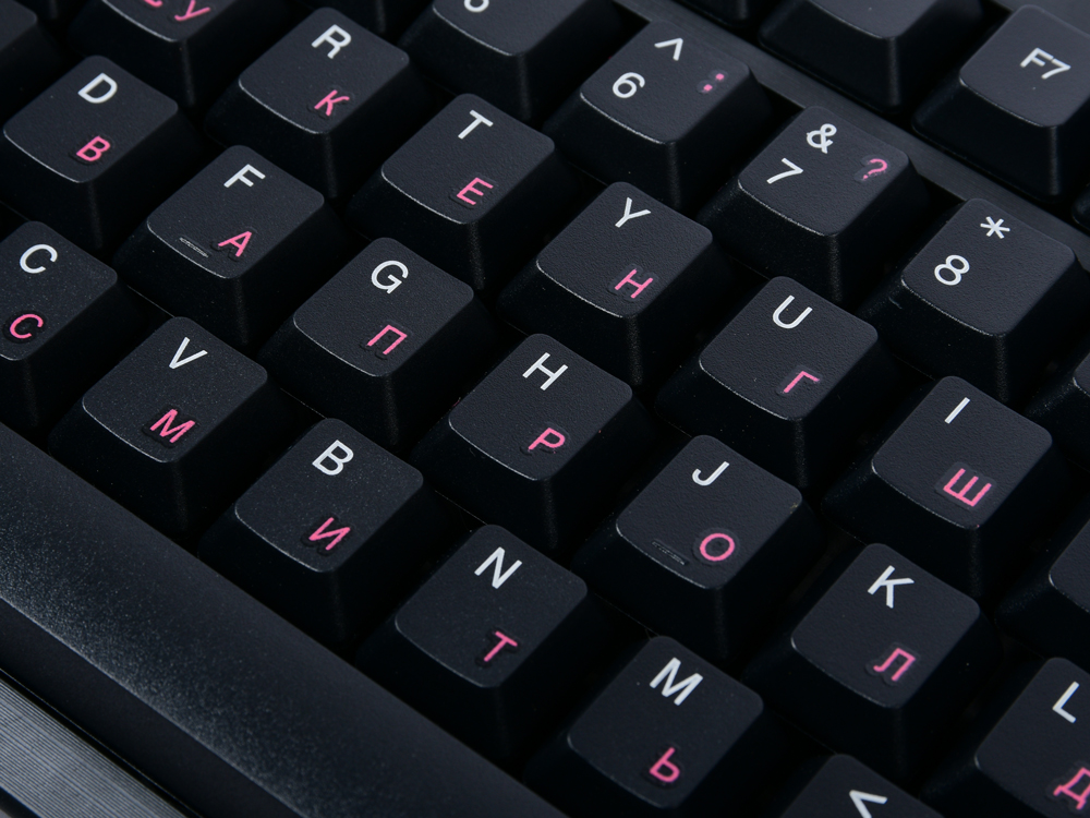 Розовые (наклейки; нанесены на клавиатуру заводским способом)