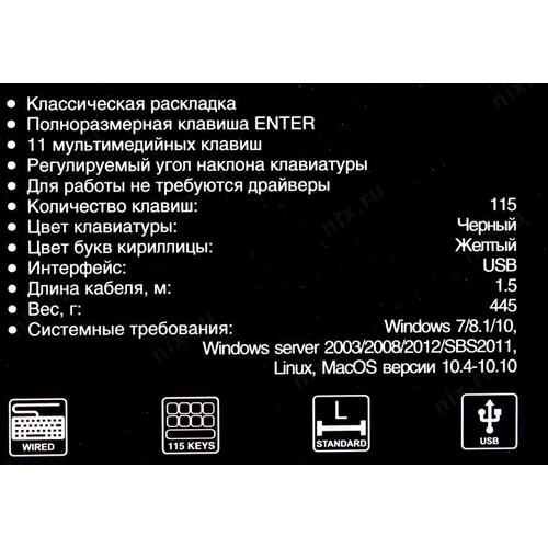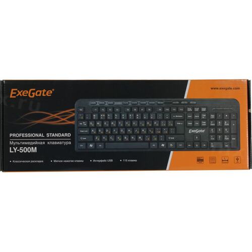 Клавиатуры Exegate EX286177RUS Клавиатура ExeGate Multimedia Professional Standard LY-500M (USB, полноразмерная, 115кл., Enter большой, мультимедиа, длина кабеля 1,5м, черная, Color box)