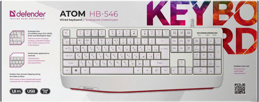 Клавиатура ATOM HB-546 RU WHITE 45547 1.8M DEFENDER