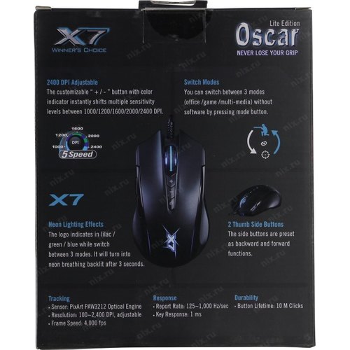 Мышь A4Tech X89 Maze черный оптическая (2400dpi) USB (8but) [X89(MAZE)]
