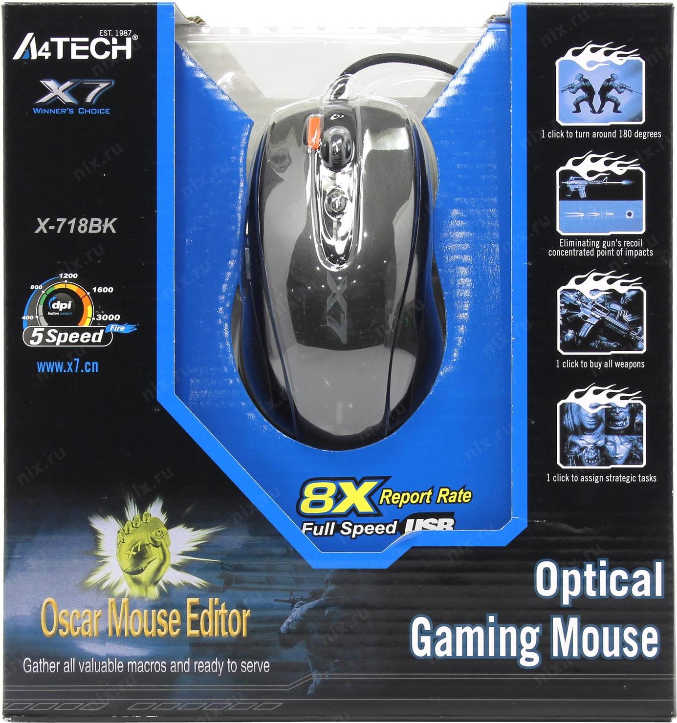 Мышь A4Tech X-718BK черный оптическая 3000dpi USB 6but (X-718BK USB)