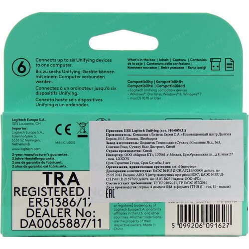 Мышь 910-005931/910-005933/993-000596 USB-приемник Logitech USB Unifying receiver (STANDALONE)