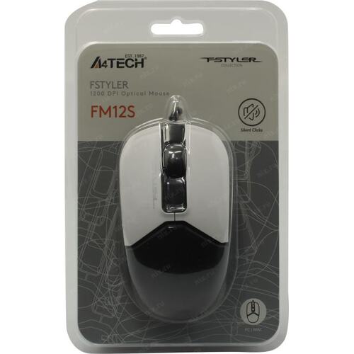 Мышь A4Tech Fstyler FM12S Panda белый/черный оптическая 1200dpi silent USB 3but