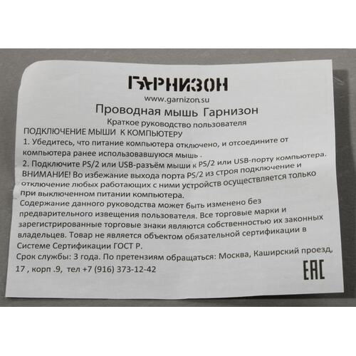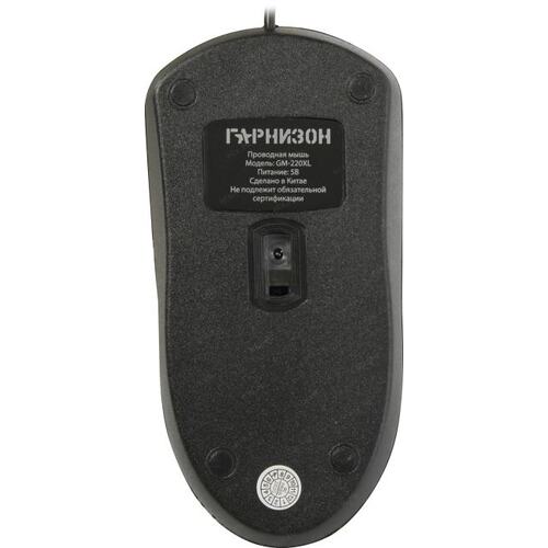 Гарнизон Мышь GM-220XL, USB, чип- Х, черный, 2м,1000 DPI, 2кн.+колесо-кнопка