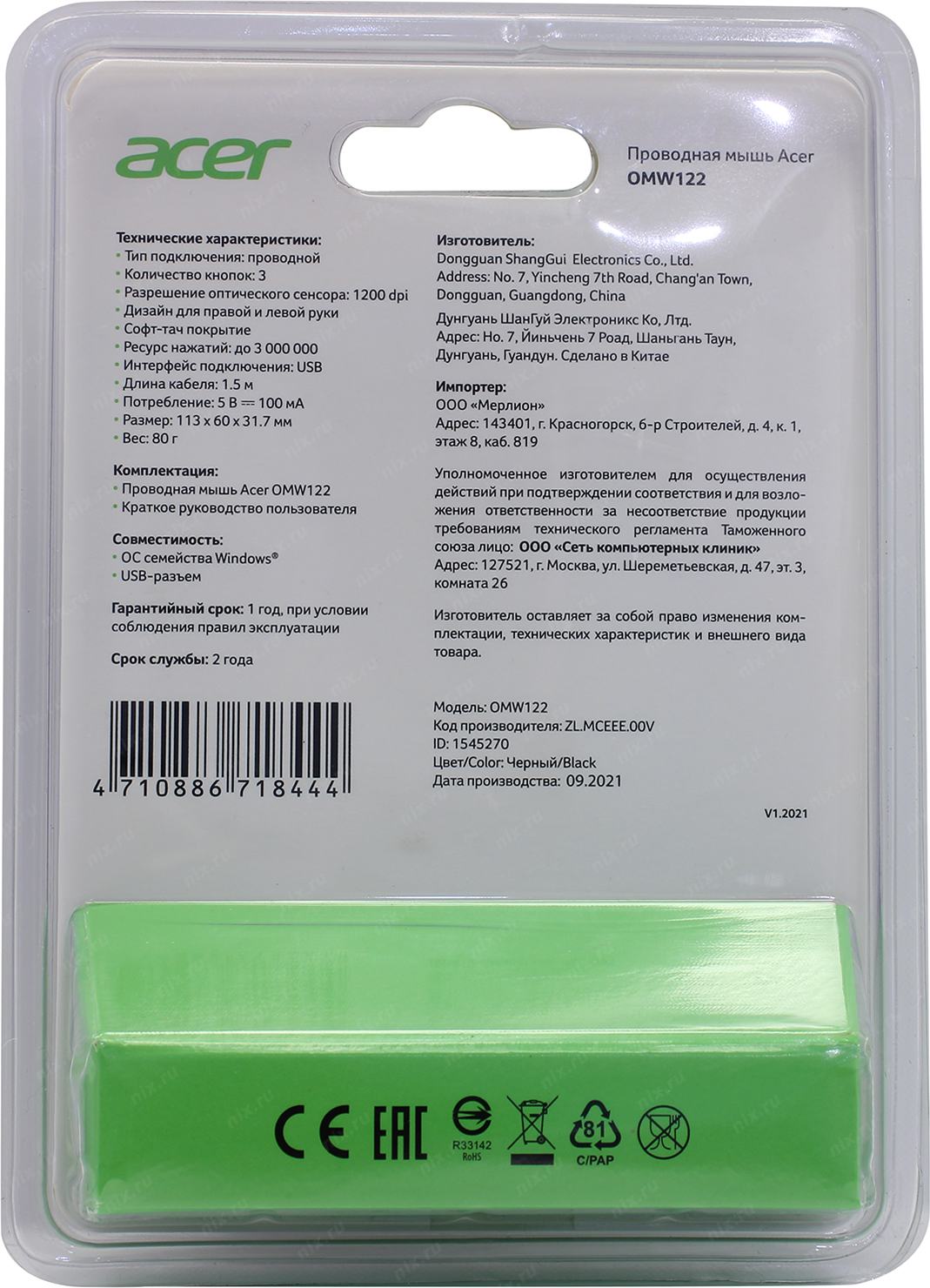 Acer OMW122 [ZL.MCEEE.00V] черный оптическая (1200dpi) USB (3but)