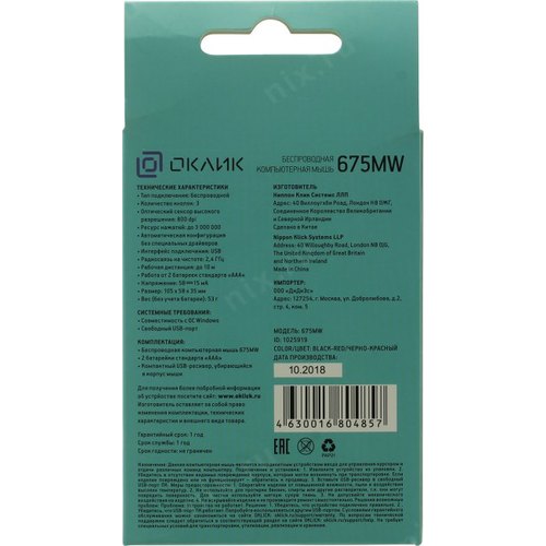 Мышь Оклик 675MW черный/красный оптическая 1200dpi беспров. USB для ноутбука 3but (1025919) OKLICK